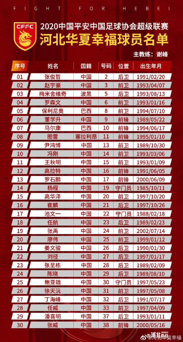 除了金洋洋之外,华夏幸福阵中还有一位名将同样落选了中超大名单,他就是32岁的门将耿晓峰。出自鲁能青训的耿晓峰,可谓是中超赛场上的大帅哥。他俊朗的外形,吸引了不少球迷的关注。上赛季,耿晓峰是华夏幸福一线队出场次数最多的门将,获得了16次登场机会。但在新赛季,耿晓峰也未能报名中超。华夏幸福在门将位置上选择了杨程、池文一以及U23门将鲍亚雄。