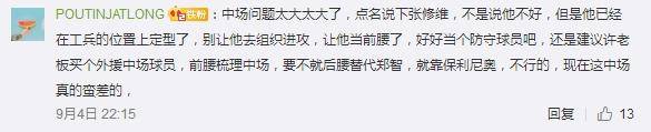 随着恒大丢球之后,卡纳瓦罗马上换人调整,把张修维、何超、梅方等人换下,随后塔利斯卡扳平比分,保利尼奥打进绝杀球。赛后,张修维成为了恒大球迷批评的对象之一,有的球迷认为不是说张修维不好,但是他已经在工兵的位置上定型了,别让他去组织进攻,让他当前腰了,好好当个防守球员吧。返回搜狐,查看更多