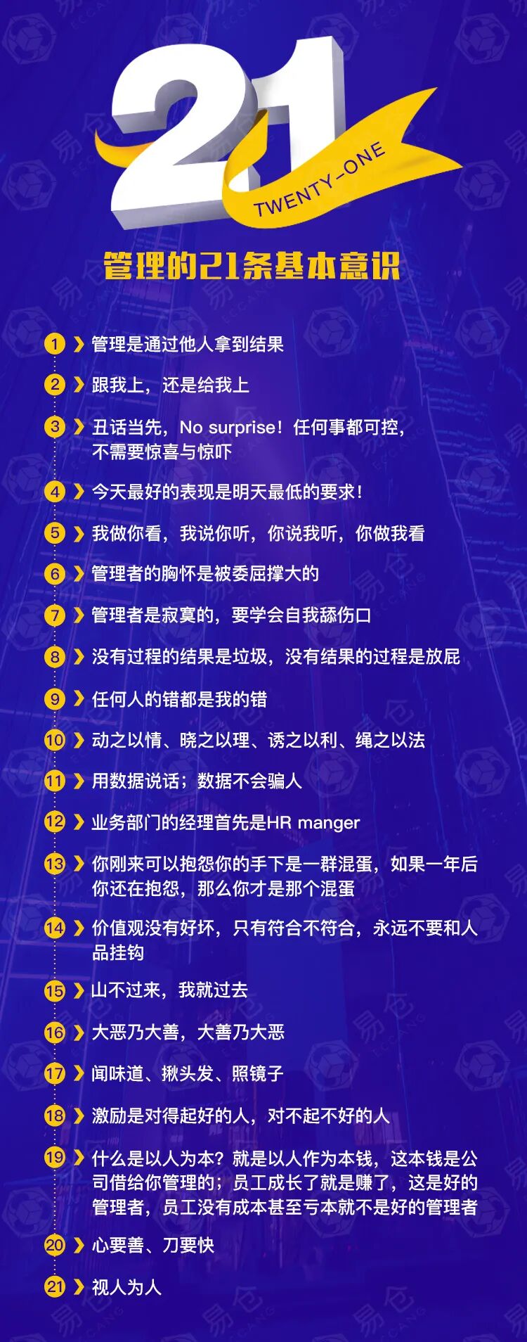 易仓科技营销中心总经理文威,基于多年的管理经验,从管理的关键和基本意识、人性的管理应用、如何通过管理提升人效三大维度发表了看法和建议,助力跨境电商管理修自身、炼团队,提升企业人效。 一管理的关键和基本意识1、人员管理的三个关键在人员管理上,首先有三个关键需要注意: 第一,管理即通过别人拿结果; 第二,管理等于管人加理事; 第三,管理人员要具备领导力,大家在