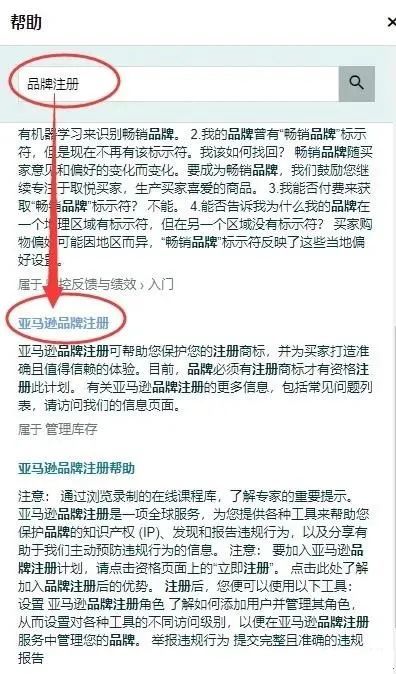 ①在搜索框中输入"品牌注册",在搜索结果中选择"亚马逊品牌注册";