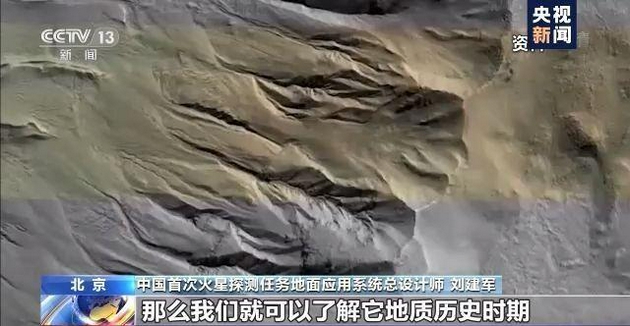 中国首次火星探测任务地面应用系统总设计师 刘建军:看到沟槽从上到下,它的岩石的类型或者成分有什么差别,我们就可以了解它地质历史时期发生了一些什么故事,这是近期会重点关注的探测对象。
