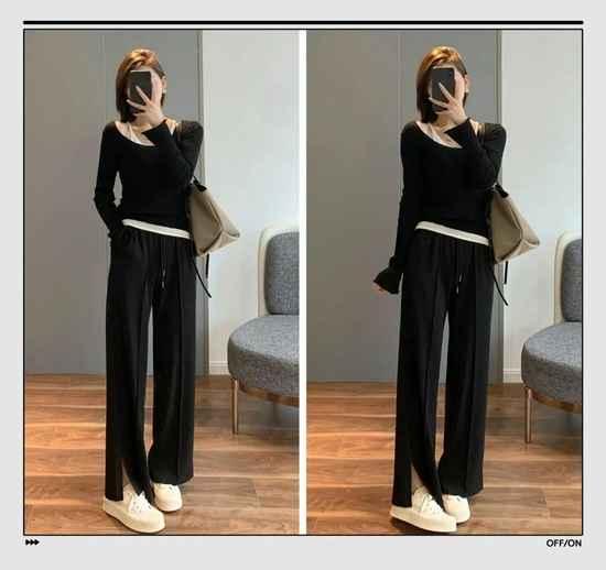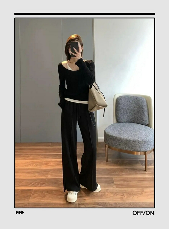 黑色不管到了什么时候都不容易过时,而且还适合不同的场合穿。黑色阔腿裤还足够的百搭。