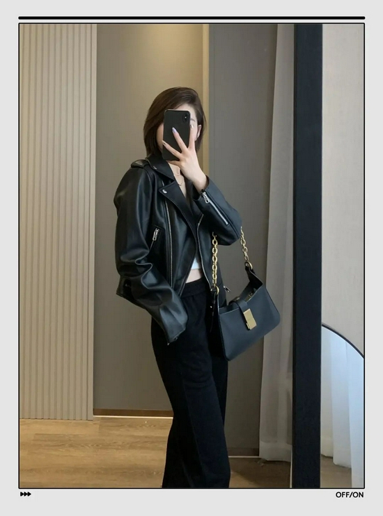 想穿出帅气感觉的姐妹,来一件经典款的短皮衣。搭配高腰阔腿裤,显高显瘦,还特别利索。内搭白色短上衣,一身不超过3种颜色,能显示出你的搭配功底极深。