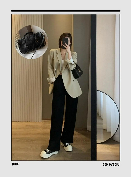 这样一件西装搭配黑色阔腿裤,并不会特别显正式,却又挺利落,是一身可以从上班穿到约会的造型。
