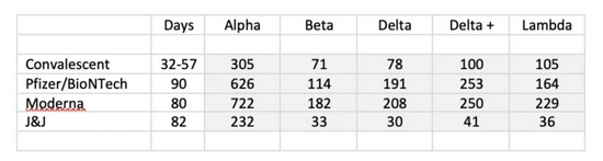 这篇报告开宗明义即提到,许多研究都显示通过自然感染病毒而产生抗体的康复患者,其体内抗体效果并不如某些疫苗。确实,近期,纽约大学对各项变异株和各种不同疫苗进行的对照研究也说明了这个问题,在纽约大学的研究中,康复患者血清的中和抗体低于两款mRNA疫苗,但是高于强生腺病毒疫苗,说明差异客观存在。