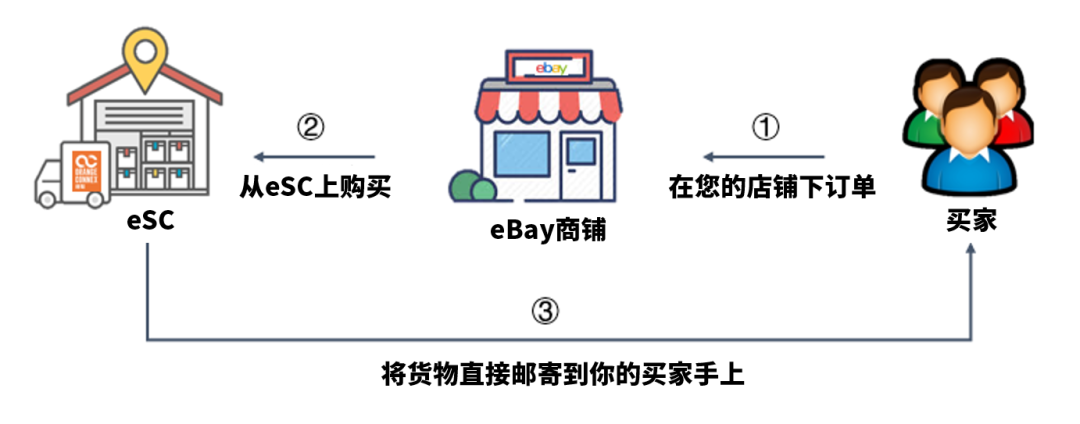 ● e件采通过盘活全球优质商品,令跨境电商卖家把商品刊登到eBay平台。当平台产生销售订单,eSC会自动抓取订单并执行履约,把商品送至买家。