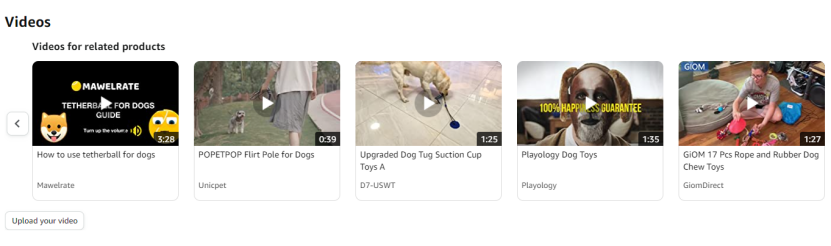 亚马逊买家秀:买家秀也叫关联视频,上传在videos的位置,这个位置有10个坑位,前5个属于这个listing,如果卖家没有自己的买家秀,那么亚马逊将会推荐竞品的买家秀,你从而流失流量和成交.