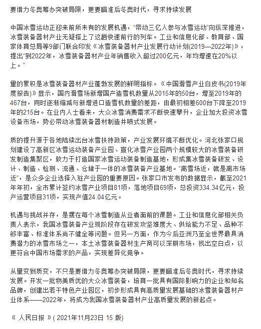 从人民日报上这篇文章可以看得出来,国家是不仅仅重视冬奥会,也重视以后的冰雪产业的发展,对于外贸公司来说,冰雪项目近期肯定也是一个风口,跟冰雪项目相关的一些外贸公司,这个时候应该是比较开心的时候,尤其是现在疫情,很多国家生产能力大打折扣,我们中国制.............