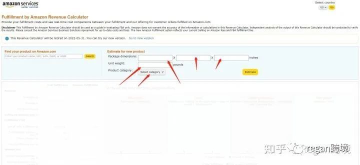进入后台之后,我们在这里输入产品的长宽高还有重量,再选择我们要做的类目,可以直接得出来我们的产品配送费用是多少。注意填写的长宽高和重量是以英寸和磅为单位。