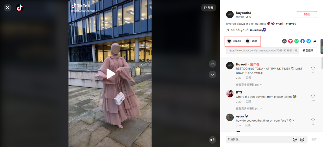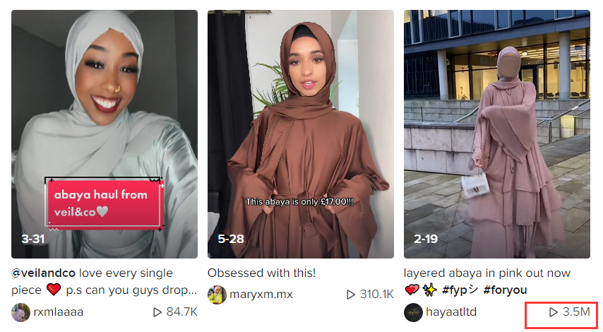 依旧是TikTok上,某个介绍穆斯林罩袍穿搭的视频在不到半年的时间里,累积了350万观看数。