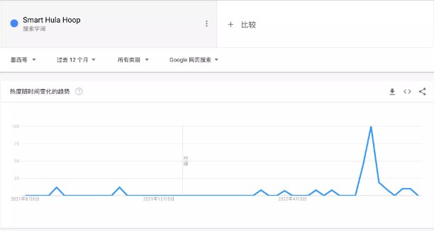 AMZ123通过谷歌搜索趋势发现,在墨西哥,智能呼啦圈在今年6月出现搜索高峰,比平时高出5倍不止。