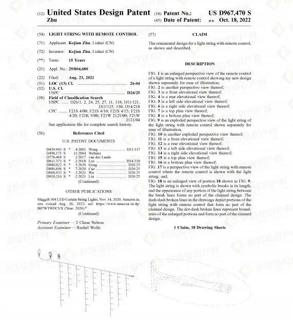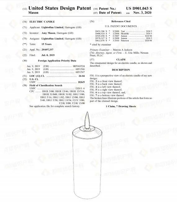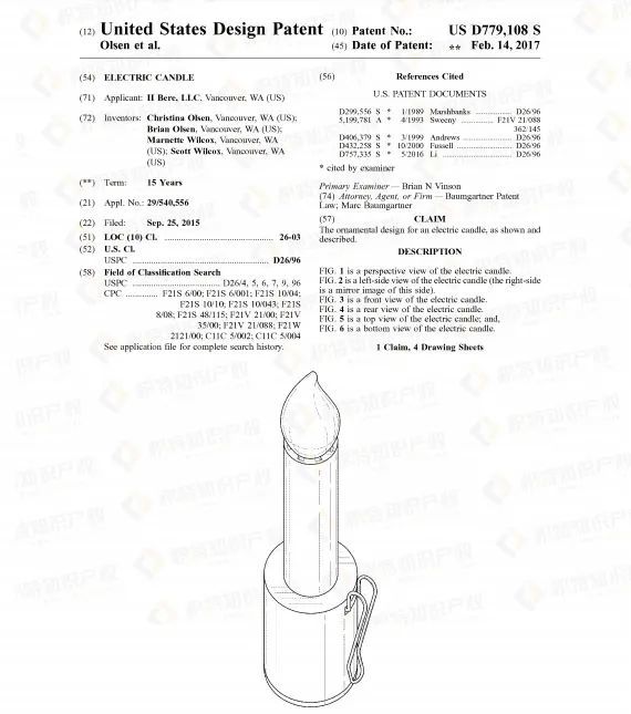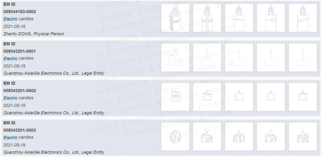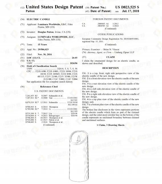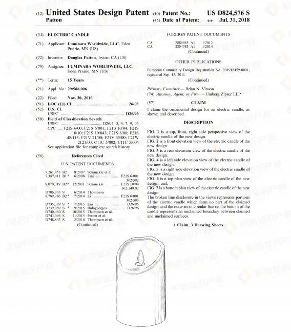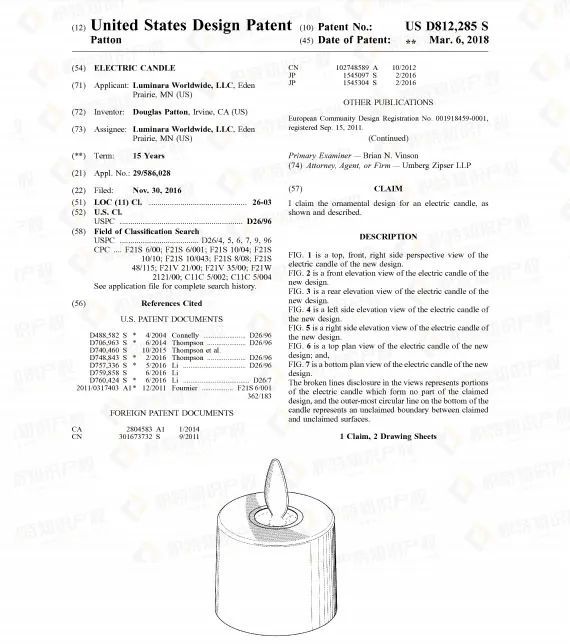但机遇往往与危机并存,热销产品大多都存在侵权风险,蜡烛灯也不例外。查询发现了不少相关外观专利,若卖家所售产品与之高度相似,极有可能被诉专利侵权。