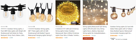 灯串说到旺季热销的灯具产品,想必有不少人都会第一时间想到灯串。这类产品有多好卖,在亚马逊一搜便知,留评可观的产品非常多。