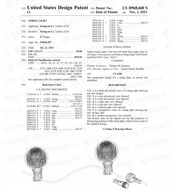 除蜡烛灯外,旺季热销的装饰灯具不少,不过同样存在外观专利侵权风险,有卖相关产品的卖家需要注意比对分析,以免踩雷~