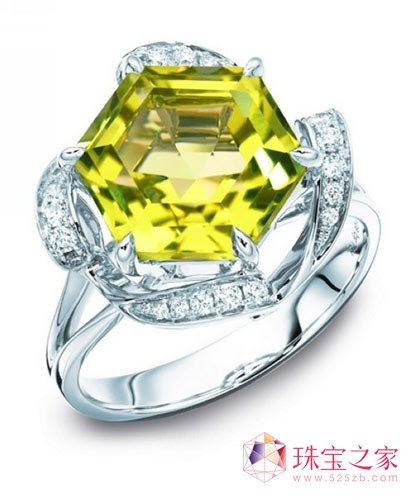 18K白色黄金镶金色绿柱石、白钻及啡钻戒指