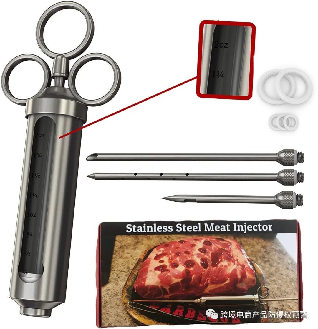那么售卖下面这款【腌料注射器】,只是针筒部分有区别,是否会侵权:?