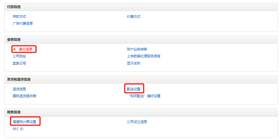 ① 身份信息-公司地址,此信息用于识别您是欧盟还是非欧盟卖家。