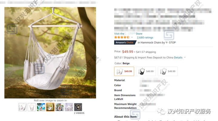 吊椅不止是阳台专属,与庭院搭配也可以相得益彰。吊椅既具有桌椅的实用性又具有秋千的娱乐功能,精致漂亮的造型还可以为庭院增添景观亮点,让生活更具吸引力!应一位卖家朋友的要求以及提供的素材做一款秋千吊椅的外观专利防侵权检索分析(同意公开),分享如下!下面这款秋千吊椅,目前是亚马逊美国站的AmazonsChoice,现有留评数2,680,售价为49.99美金:产品卖点分析由柔软的涤棉制成,无异味,不易撕裂