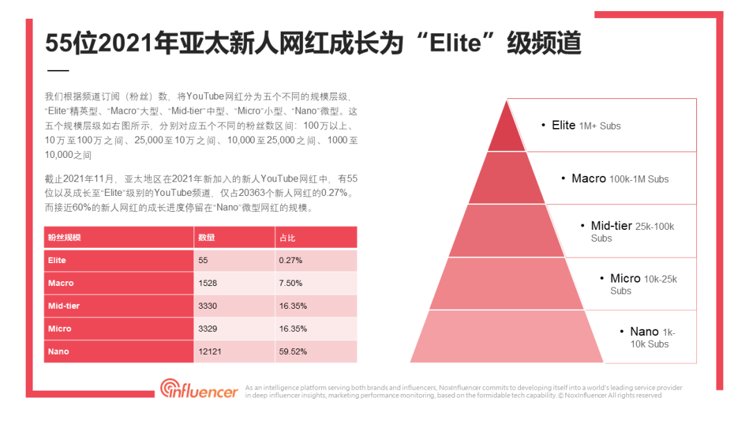 1. 55位2021年亚太新人网红成长为"Elite"级频道