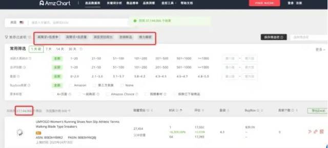 这款工具具有类似jungle scout和h10的功能,但依旧可以免费使用。它的商品数据库在实时更新,卖家能够根据自己的要求筛选符合要求的商品。它通过抓取的商品数据:销量、BSR排名、评论数、卖家数量等,提供一个类目商品参数去服务亚马逊卖家。