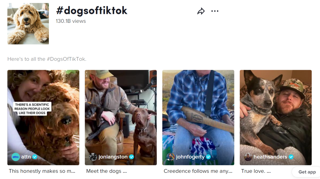 宠物类的内容已经成为 TikTok 上一个非常受欢迎而且热度持续增长的类别,比如 TikTok 上的 #DogOfTikTok 和 #PetsOfTikTok 标签下的短视频都已经获得了十亿级别的观看量。
