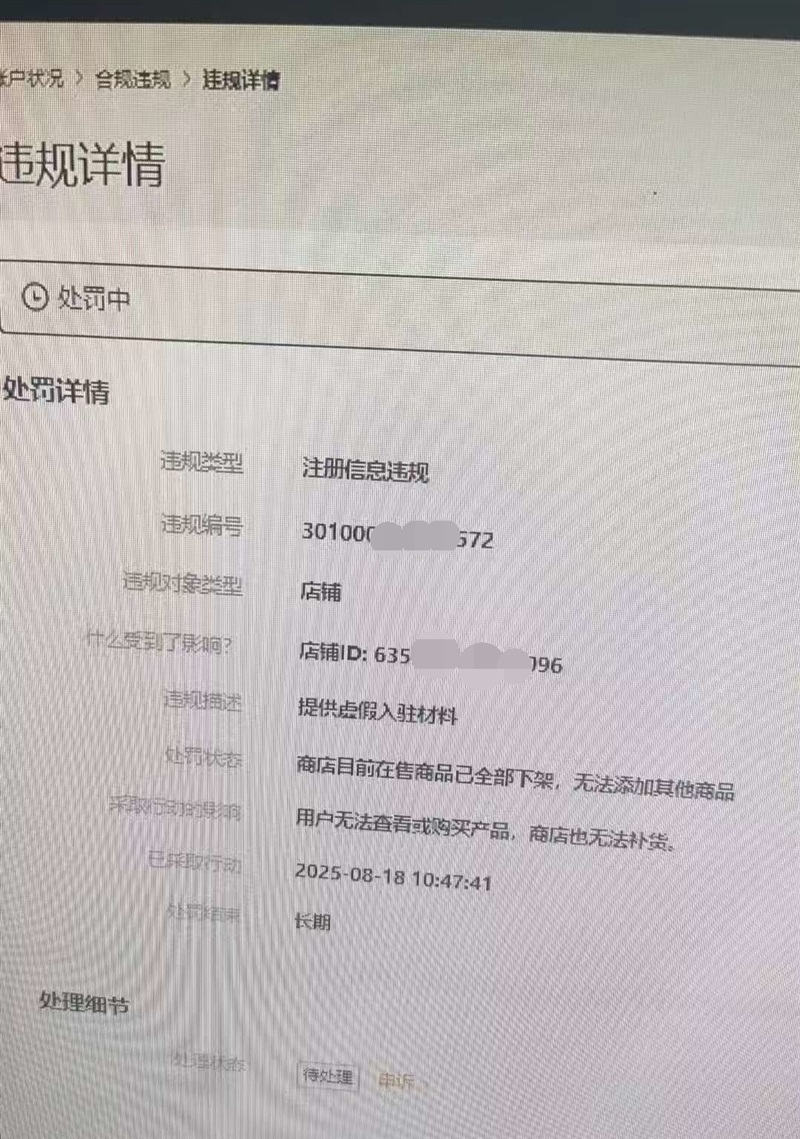 8月18日,Temu卖家陆续发现,美国本土店铺因注册信息违规被封号。一时间,店铺内所有在售商品全部下架,不仅无法添加新商品,用户也无法查看或购买产品,就连补货操作也被禁止。